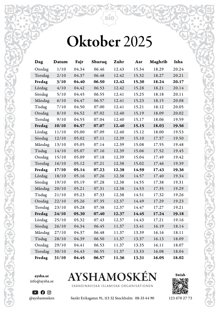 Du kan också betala din zakat, sadaqah al-fitr eller fidya via moskén. Detta gör du till Swish-nummer 123 172 29 90.